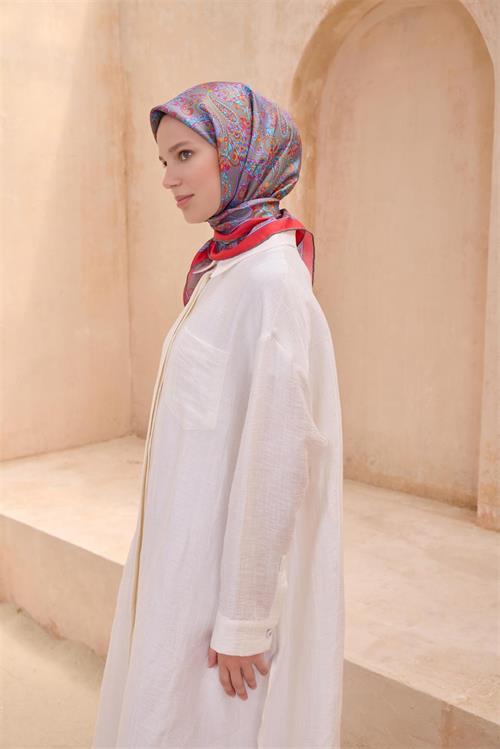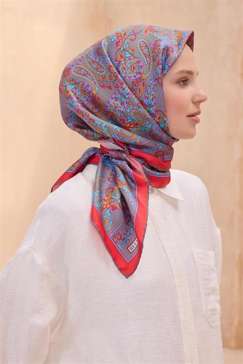 BELLİ ETNIK DESEN İPEK EŞARP 4101D TWILL kırmızı