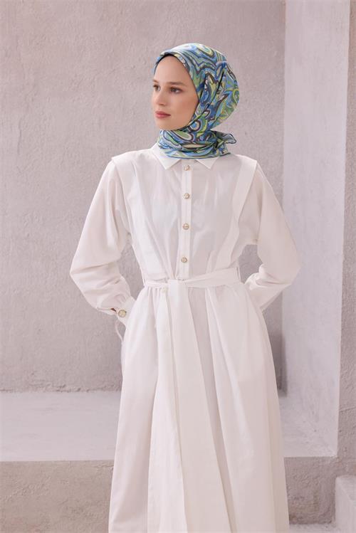 BELLİ ETNİK DESEN İPEK EŞARP 4222D (TWILL) YEŞİL MAVİ - 81