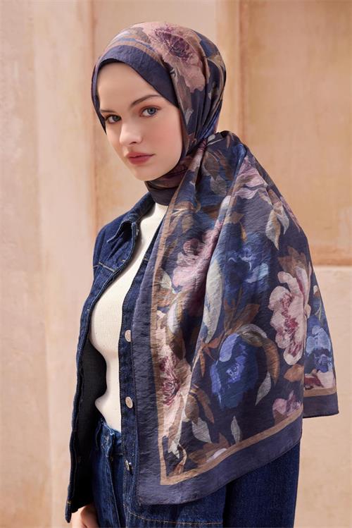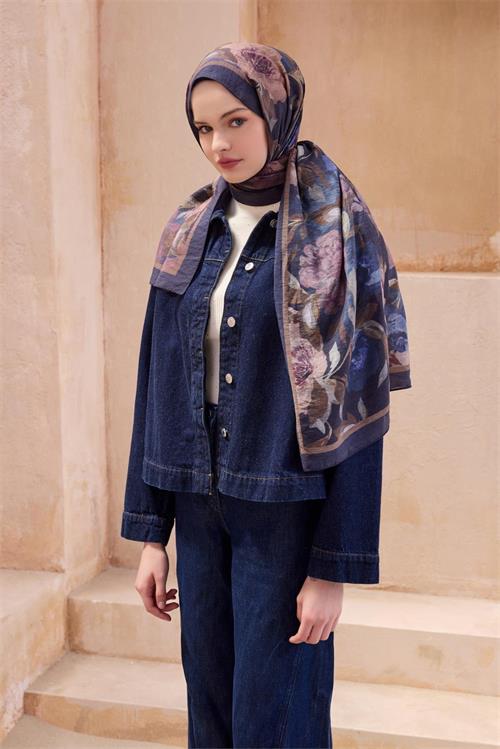 BELLİ FRESH ÇİÇEK DESEN LACİVERT SANDA ŞAL 1362