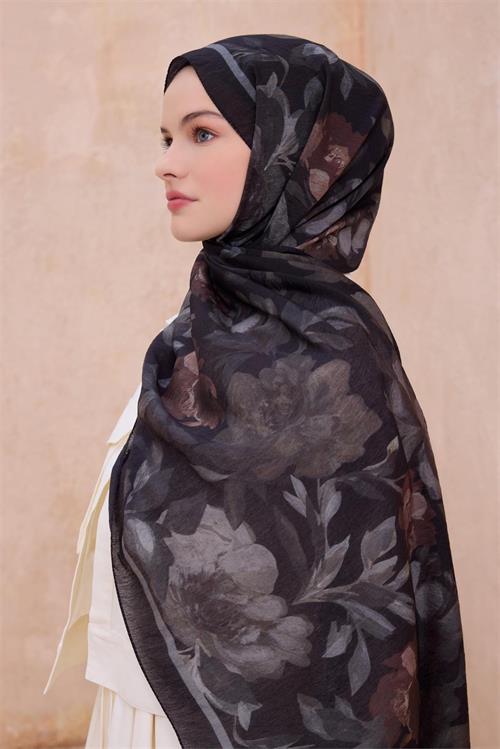 BELLİ FRESH ÇİÇEK DESEN SİYAH SANDA ŞAL 1362