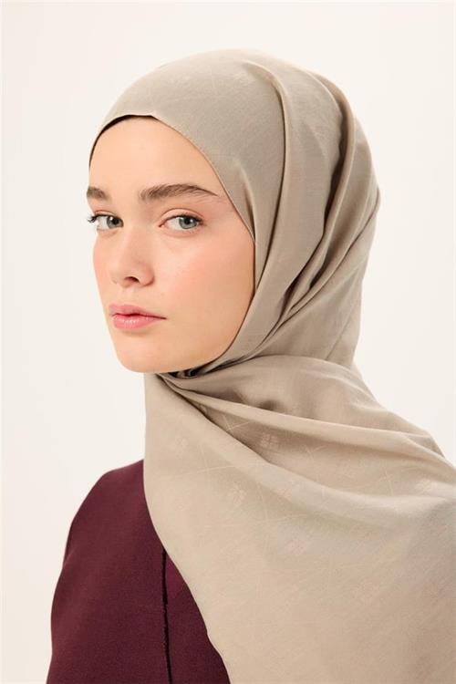 Monogram Desen Liva Şal Koyu Bej Düz Dokulu Nefes Alan 90x200