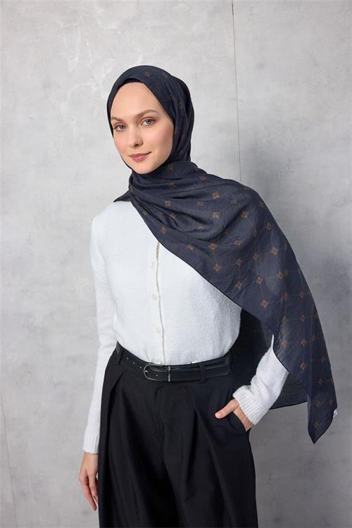 Olinda Şal Monogram Desen Gece Laciverti 75x195