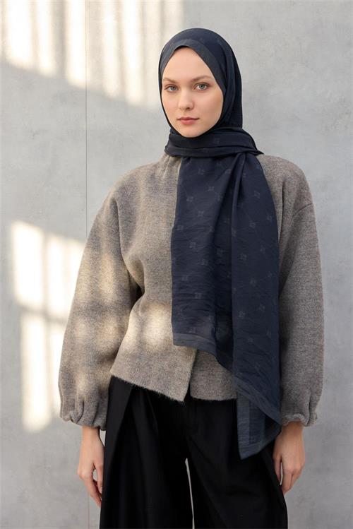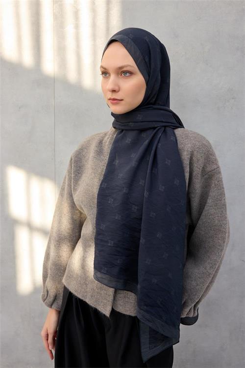 Olinda Şal Monogram Desen Gece Mavisi 75x195