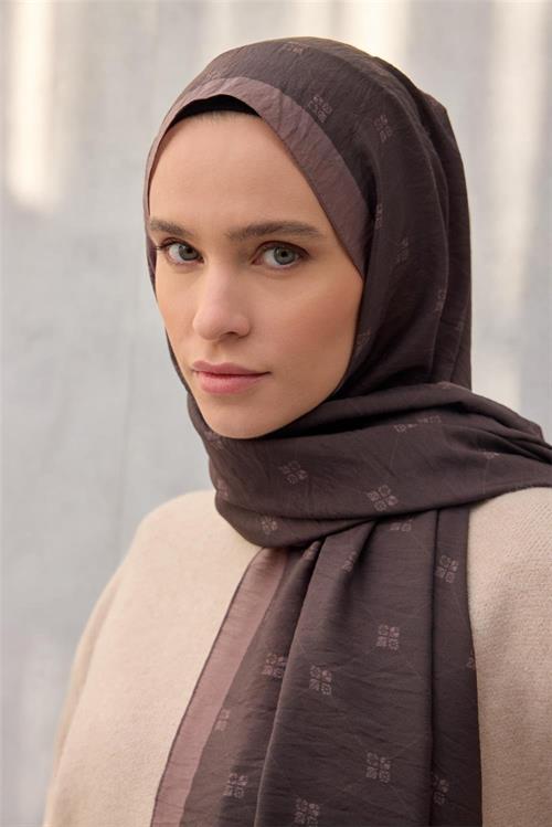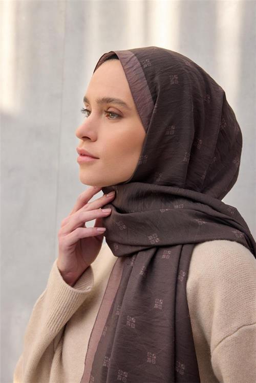 Olinda Şal Monogram Desen Koyu Kahve 75*195