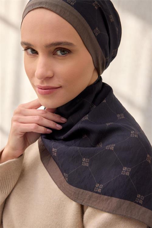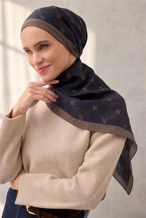 Olinda Şal Monogram Desen Koyu Lacivert 75x195