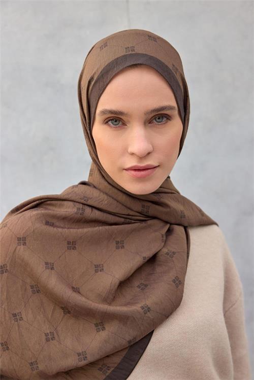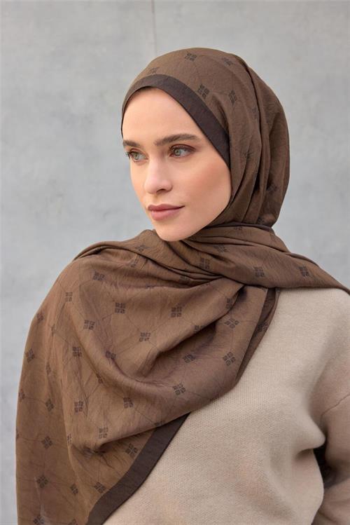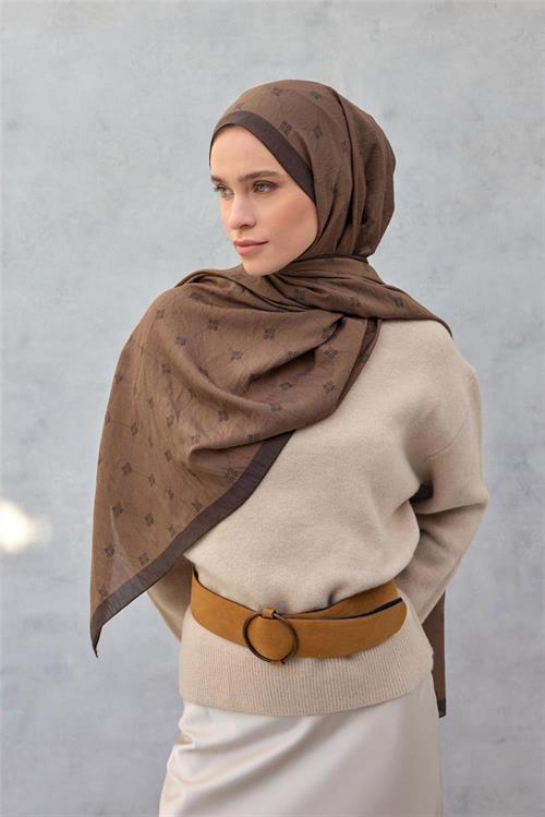 Olinda Şal Monogram Desen Sütlü Kahve 75*195