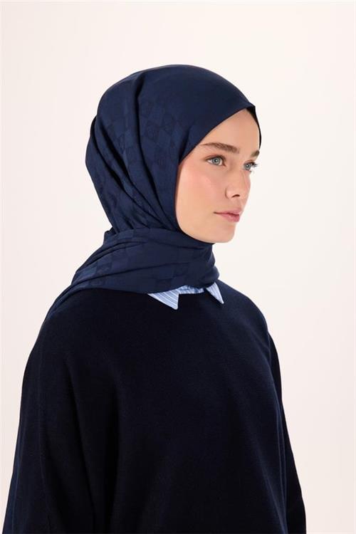Pamuk Polyester Liva Şal Lacivert Dokulu Nefes Alan 90x200